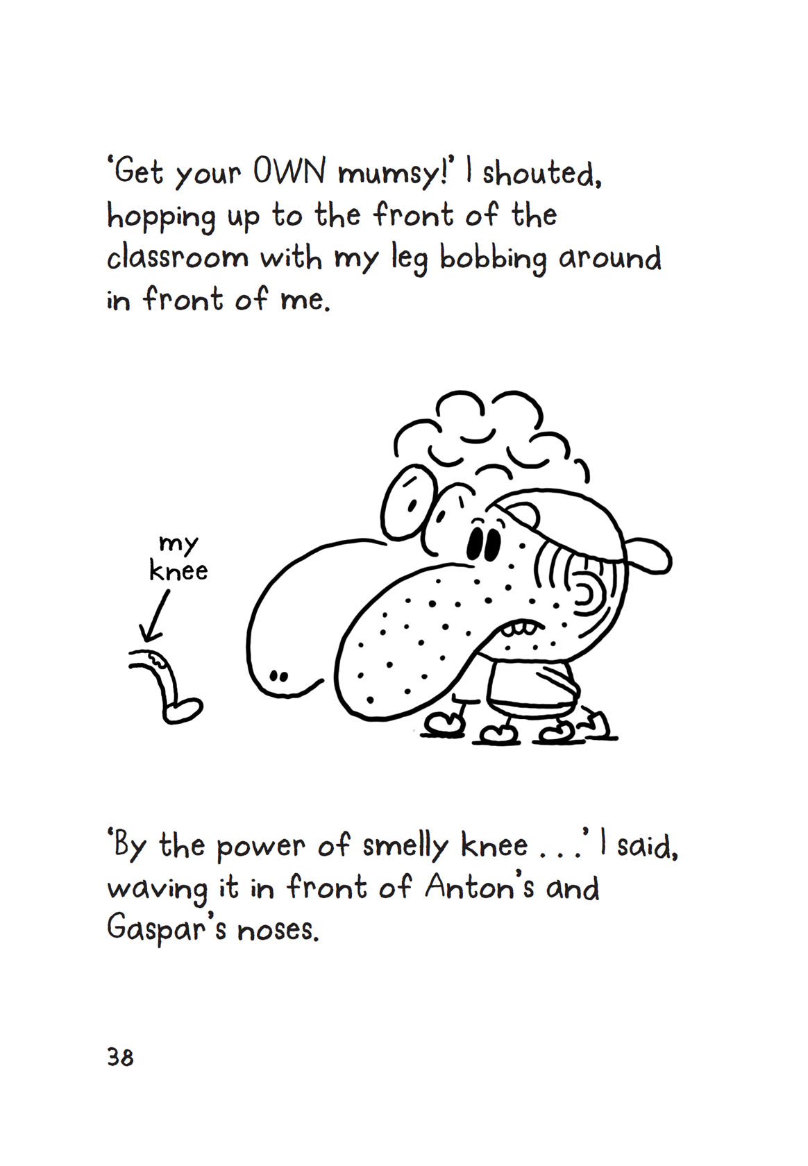 ‘By the power of smelly knee . . .’ I said, waving it in front of Anton’s and Gaspar’s noses.