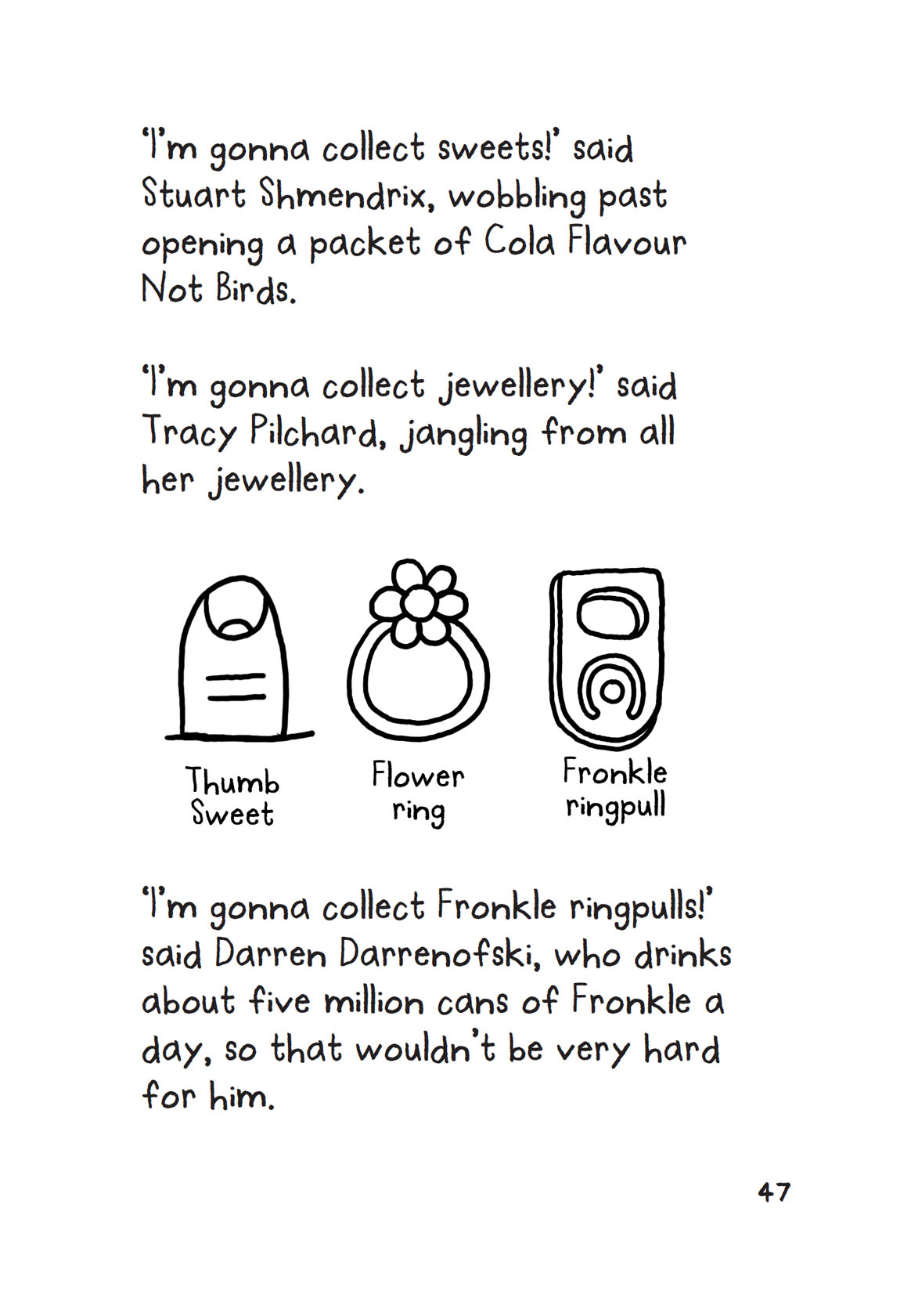 It was rubbish having to stay in the classroom with Miss Spivak for the whole of break, looking through the window at everyone in the playground coming up with their stupid collections.