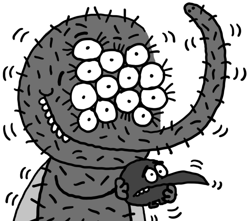 ‘No need to be scared, little ratboy!’ smiled the man with thirteen eyes. Not that he was a man exactly, he was more of a man-sized fly.