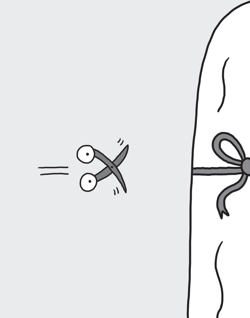 ‘Ooh a ribbon,’ squeaked Norman, swishing his blades open. ‘I just can’t resist!’