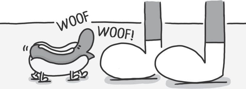 ‘It’s just a hot dog, Ratfingers!’ said Twoface, picking it up and slotting it into his mouth. ‘Mmm, good doggy!’ he smiled, and a muffled woof echoed inside his tummy.
