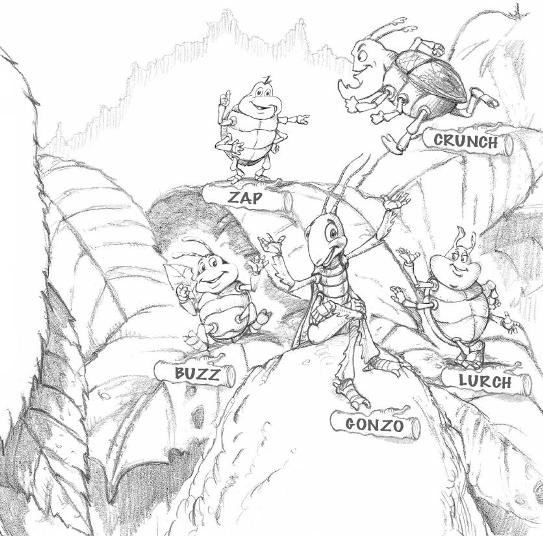 Zap landed on Gonzo’s Rock. A crowd of cheering bugs crawled over to him.