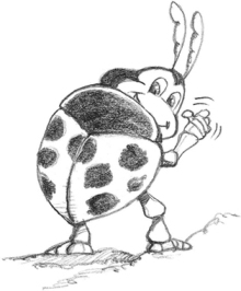 The weevil pointed to a tiny speck of blackberry stuck to Buzz’s shell, which made it look like he had an extra spot! Buzz flicked his shell and caught the berry-speck in his mouth.