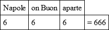It is also remarkable that in the man’s name, Napoleon Buonaparte, there are precisely three times six letters: —