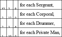 and to be repeated at the end of three years; the Sergeant Major, and 1 Sergeant, and 1 Drummer per Company, to have clothing annually.
