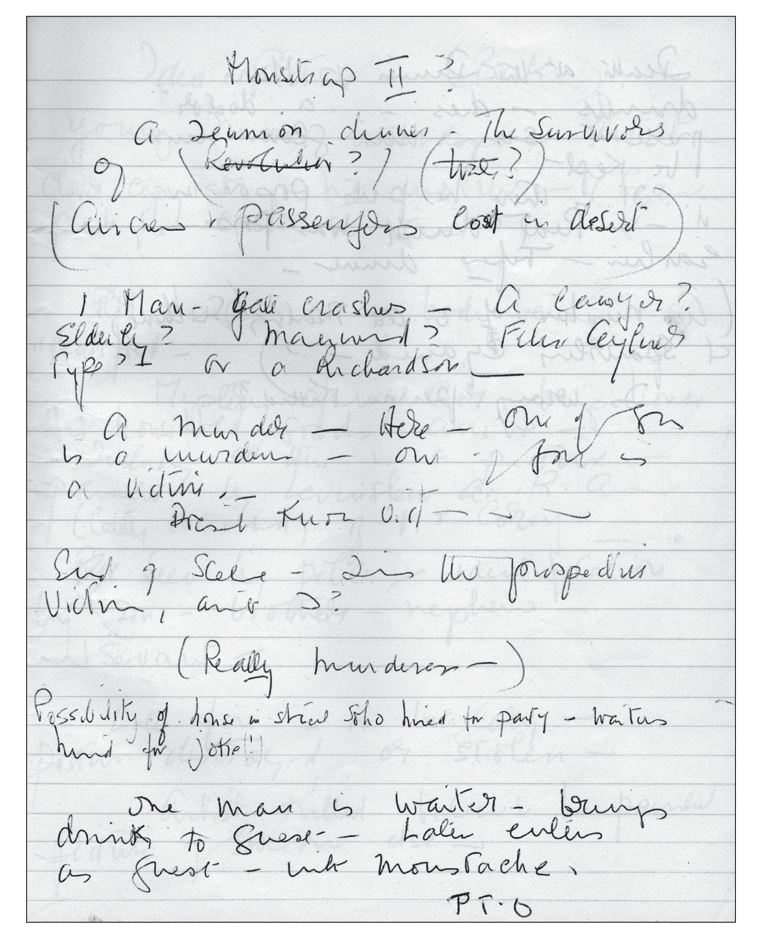 Second, in many cases jottings for a book may have preceded publication by many years. The earliest notes for The Unexpected Guest are headed ‘1951’ in Notebook 31, in other words seven years before its first performance; the germ of Endless Night first appears, six years before publication, on a page of Notebook 4 dated 1961.