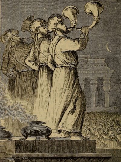 The jubilee year was always ushered in by the blasts of the sacred trumpets. "Then shalt thou cause the trumpet of the jubilee to sound on the tenth day of the seventh month, in the day of atonement shall ye make the trumpet sound throughout all your land" (Lev. xxv. 9). Then there was the festival known as the Feast of Trumpets. "In the seventh month, on the first day of the month, ye shall have an holy convocation; ye shall do no servile work: it is a day of blowing the trumpets unto you" (Numb. xxix. 1).
