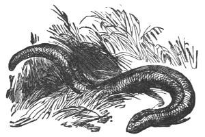 Perhaps the pleasantest portion of snake-keeping was the feeding. It was found that the snakes lost their appetite, and would not eat, though frogs and newts were liberally supplied. So the boys settled the matter by opening the mouth of the snake, and pushing a newt fairly down its throat.