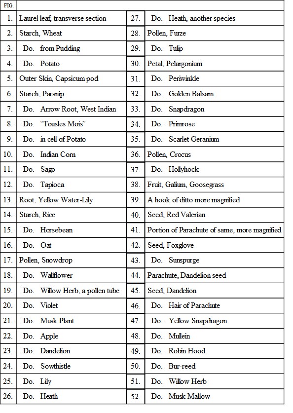 Starch, its Growth and Properties—Surface Cells of Petals—Pollen and its Functions—Seeds.