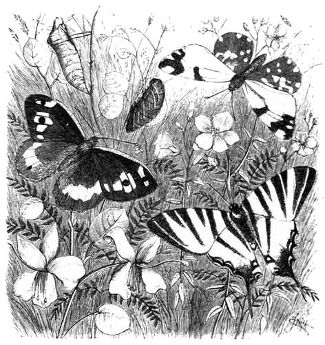 Buxtorf derives the word from a root signifying "to shave," or "to shear," in allusion to the havoc which the gâzam makes among the vegetation. The reader will see that it is impossible to decide with any certainty upon the precise species of insect signified by the word gâzam; but there can be no harm in following the translation of the Septuagint and Vulgate, both of which render it as "caterpillar." Assuming, therefore, that it is a caterpillar of some kind, I have inserted figures of some butterflies found in Palestine, together with the caterpillar and chrysalis of one of them, namely the Papilio.