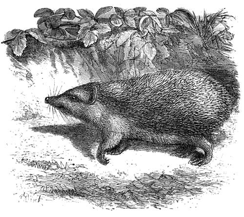 There are at least two species of Hedgehog known in Palestine, that of the north being identical with our own well-known animal (Erinaceus Europœus), and the other being a distinct species (Erinaceus Syriacus). The latter animal is the species which has been chosen for illustration. It is smaller than its northern relative, lighter in colour, and, as may be seen from the illustration, is rather different in general aspect.