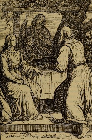 ABRAHAM OFFERS FOOD TO THE THREE STRANGERS.