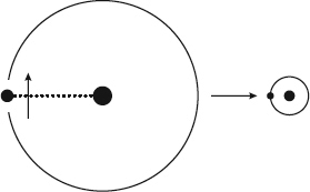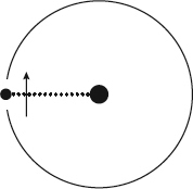 “Good, a hydrogen atom, nice and simple: a nucleus in the centre and one electron spinning around, with a constant spatial relationship between the nucleus and the electron – this distance, this distance right here.” Al drew a dotted red line between the dot at the centre and the dot on the outside.