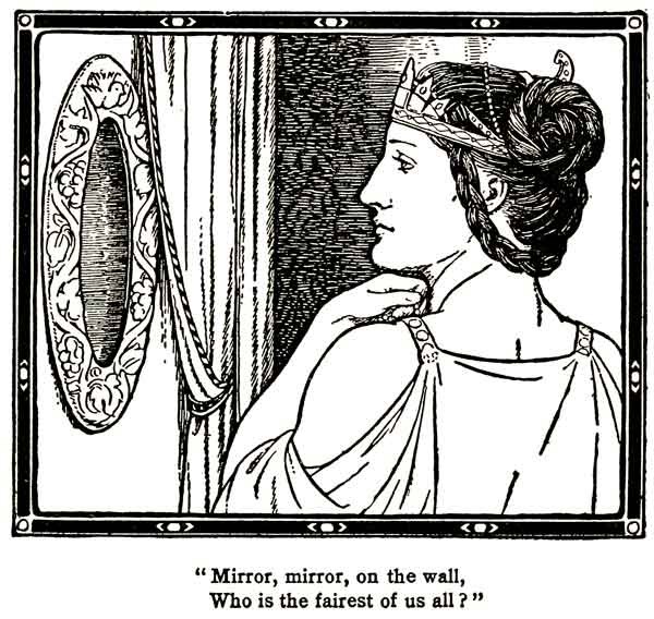 "Mirror, mirror, on the wall,Who is the fairest of us all?"the mirror replied: