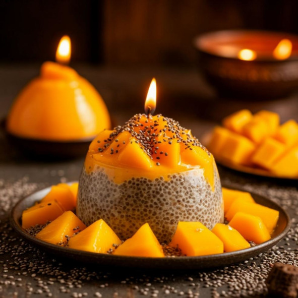 Как лёгкий шёлк на коже – нежный вкус манго соединяется с жемчужинами семян, рождая тишину в сердце. Этот десерт подобен вечерней заре, когда чувства замирают, уступая место глубокому удовольствию от бытия.