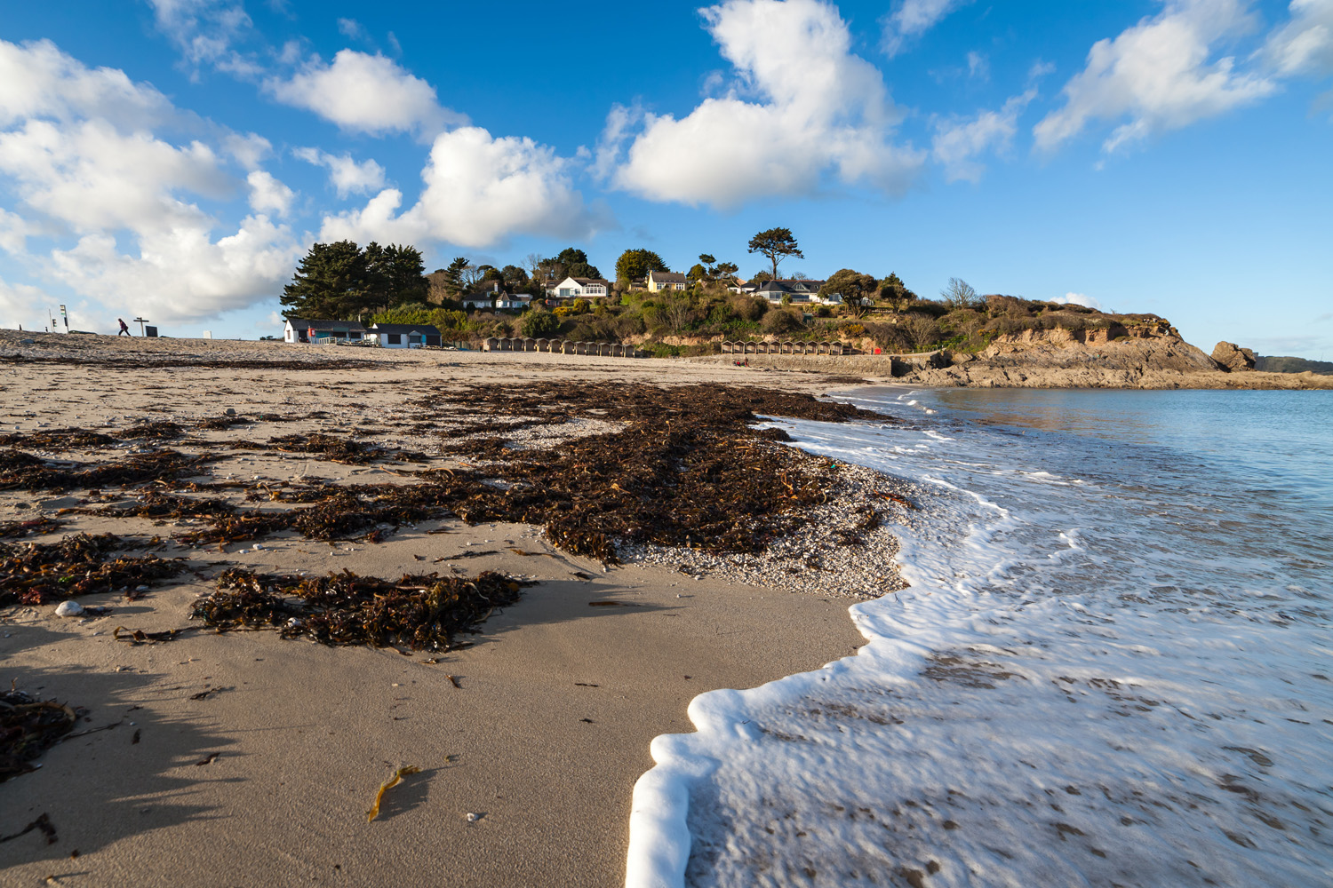 A sunny day on Swanpool Beach, close to the Swanpool Lake Nature Reserve in Falmouth.