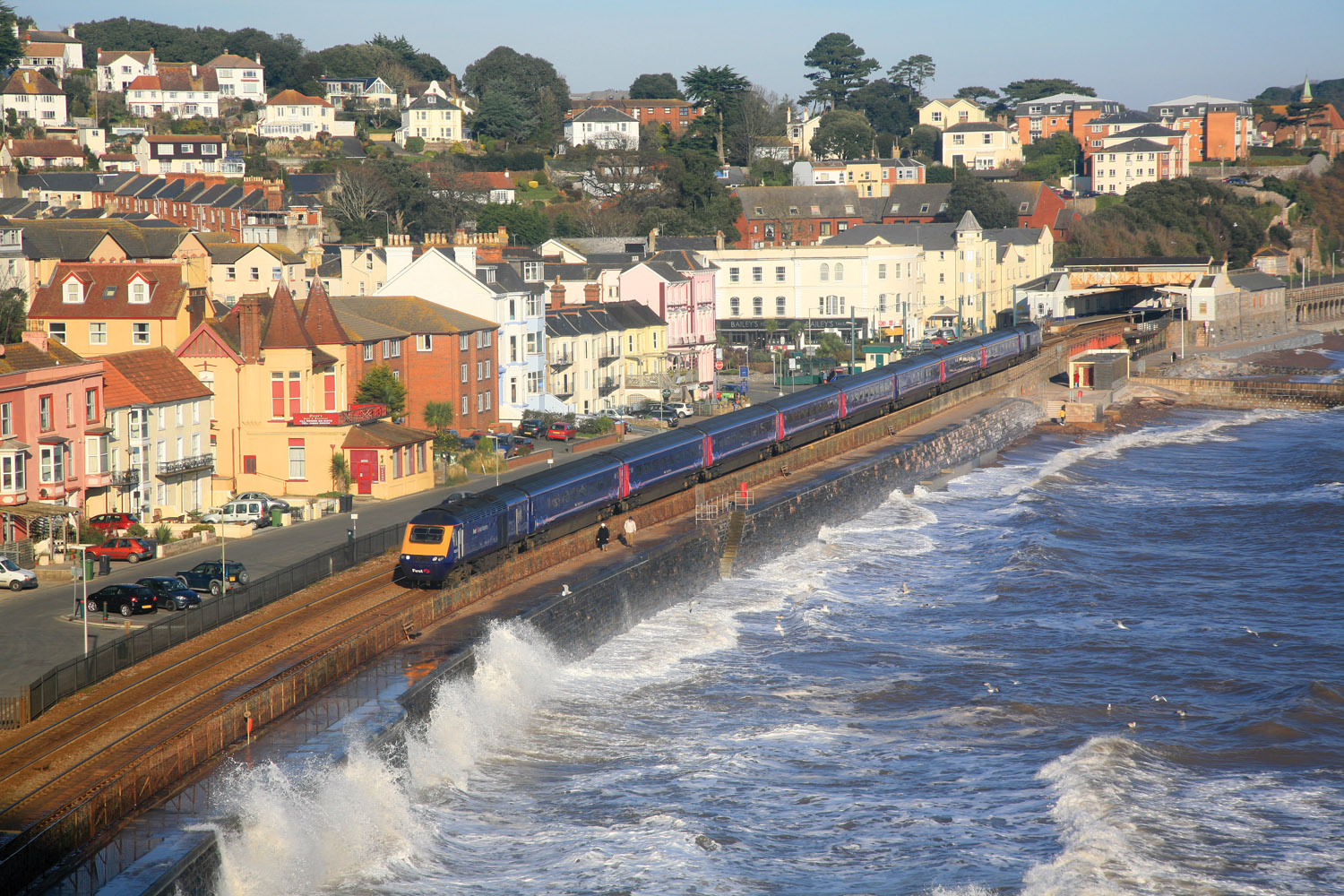 The journey from Plymouth to Exeter takes in this wave-swept coastal stretch of railway at Dawlish.