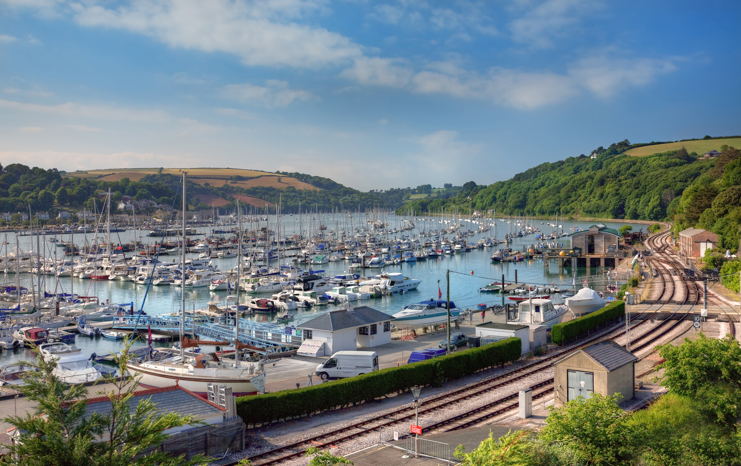 Trains on the Dartmouth Steam Railway end their journey from Paignton along the shore of the picturesque Dart Estuary at Kingswear.