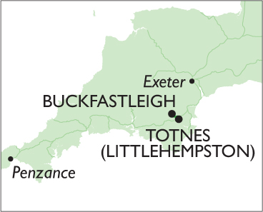 Steam-hauled trains now carry visitors on a delightful journey alongside the River Dart from the new terminus at Totnes (Littlehempston) – the station is accessible via a footbridge over the Dart from the national rail network station in the town. Leaving Totnes, the railway winds its way northwards up the meandering Dart Valley and past the parkland grounds of Dartington Hall to reach the only intermediate station and passing loop at Staverton. From here, the railway continues up the wooded valley, occasionally passing farms and isolated cottages before ending at the lovingly restored Buckfastleigh station. Here, a small but fascinating railway museum, miniature railway, café, butterfly farm and otter sanctuary are found while in the town (reached under the ugly concrete bridge of the A38 dual carriageway) there is Buckfast Abbey, famous (some say notorious) for its popular tonic wine.