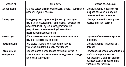 Таблица 1.1. Формы международного научно-технического сотрудничества