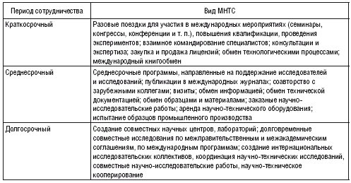 Таблица 1.2. Виды международного научно-технического сотрудничества в зависимости от длительности периода сотрудничества