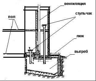 Люфт-клозет – внутридомовая тёплая уборная с подземным выгребом, в который фекалии поступают через сточную (фановую) трубу. В люфт-клозете вентиляция осуществляется через специальный люфт-канал, примыкающий к обогревательным устройствам, а выгребной люк располагается снаружи.