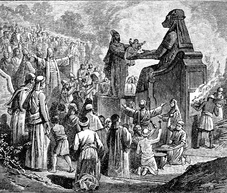 Об этом кошмарном обычае писал и Плутарх, дополняя сообщением, что при подобном жертвоприношении обязаны были присутствовать матери бедных жертв, одетые в праздничную одежду и с веселыми лицами. Пока ребенок лежал на руках статуи, мать и отец должны были успокаивать его, чтобы он не плакал.