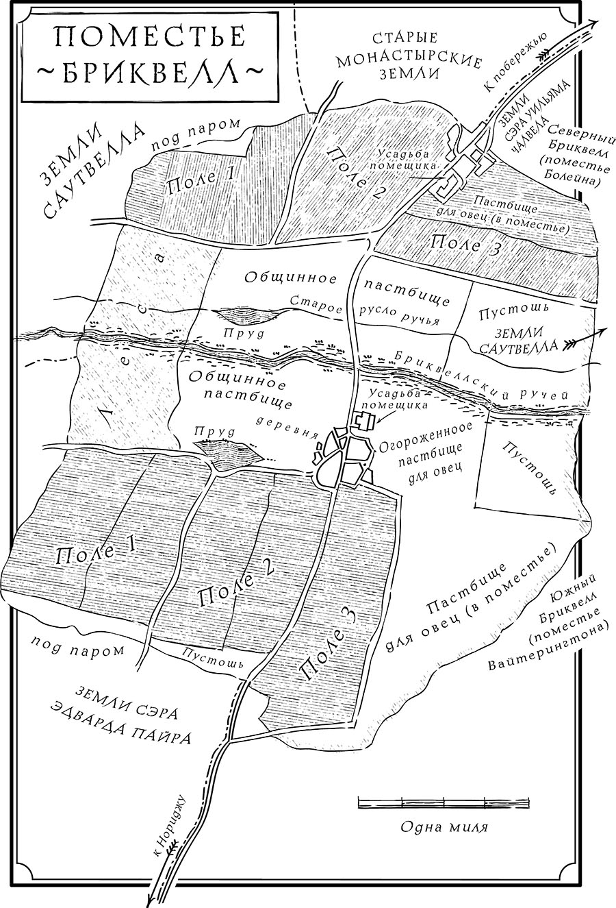 – Участки небольшие, от десяти до пятнадцати акров, – ответил Локвуд. – Конечно, есть более обширные наделы, те, что выгорожены в отдельные фермы. Но с другой стороны, встречаются и убогие хижины, владельцы которых едва сводят концы с концами, нанимаясь работать к более богатым фермерам или же занимаясь различными ремеслами. Сами понимаете, после того как Болейн и Вайтерингтон превратили большинство своих полей в пастбища, спрос на наемный труд изрядно снизился. В Северном Бриквелле проживает двадцать пять семей, а в Южном – более тридцати.