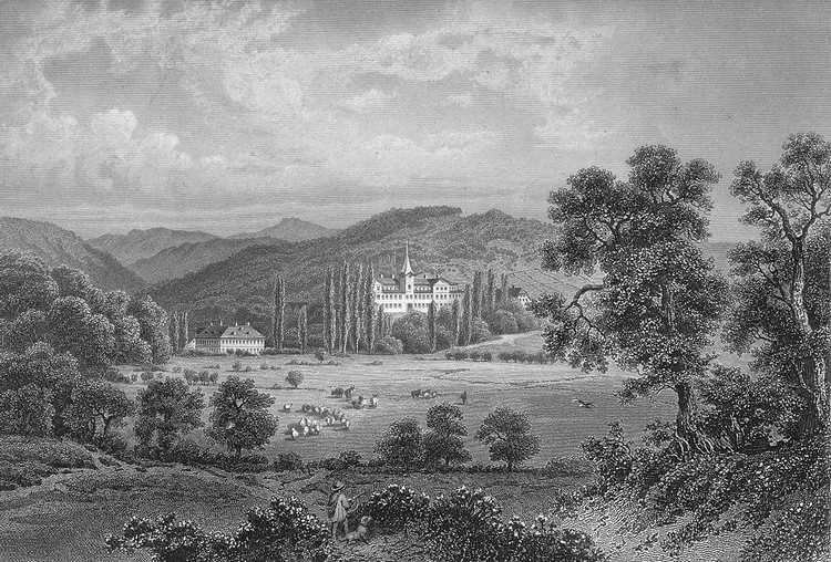 Учебно-воспитательное заведение Зальцманна в Шнепфентале, гравюра, 1810 г.