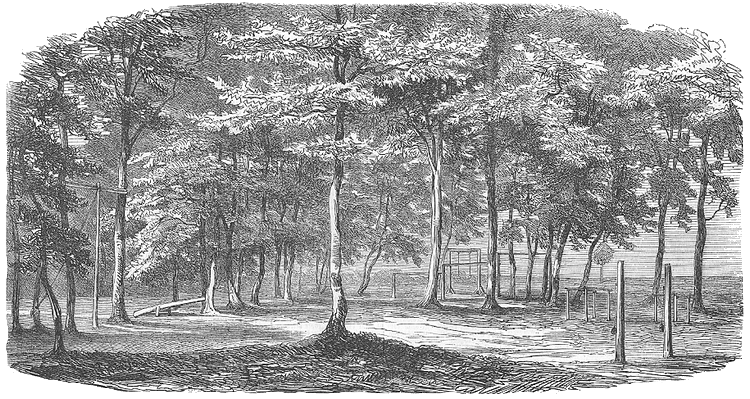 Гимнастический городок в учебно-воспитательном заведении в Шнепфентале (начало XIX столетия), первый подобного рода в Германии.