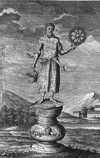 Дело в том, что Конрад Бото в «Саксонской хронике» (Chronecken der Sassen, 1492) упоминает славянского бога Кродо (Crodo) или Сатара (Ситара), алтарь которого находился в Госларе и чье имя носил соляной источник возле Бад-Гарцбурга. И по сей день этот алтарь, некогда использовавшийся в сербском храме Кродо и превращенный в XII веке в римско-католический, экспонируется в Госларском музее. Хронист описывает бога Кродо как старца с длинными волосами и бородой, облаченного в светлые льняные одежды с льняным поясом: в левой руке он держал колесо плуга, иногда похожее на мельничный жернов, с шестью спицами, образующими гексаграмму, а в правой – сосуд с розами (аллюзия на буддийский лотос?), стоя босыми ногами на рыбе, называемой окунем. Собственно, это и есть Аватар – божество, восходящее из вод и спасающее из вод, Будда цейлонских колхов Карла Риттера. Впервые в России о Кродо как славянском божестве заговорил второй после графа Ивана (Яна) Потоцкого исследователь славянских древностей Андрей Сергеевич Кайсаров (1782–1813), участник Отечественной войны 1812 года, погибший в сражении при Ганау 25 мая 1813 года и снискавший себе известность написанной по-немецки книгой «Versuch einer Slavischen Mythologie» (Гёттинген, 1804; русский перевод: «Мифология славянская и российская», Москва, 1807 и 1810 гг.).