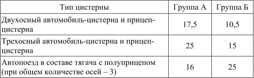 По нагрузке на оси базового шасси цистерны подразделяются на две группы (таблица 1): группа А – для эксплуатации на дорогах с капитальными покрытиями (цементобетонными, асфальтобетонными и др.); группа Б – для эксплуатации на дорогах общей сети.