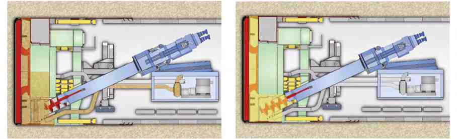 Если поверхность забоя не может быть самостабилизирована, необходимо использовать режим защиты экранирования EPB для проходки туннелей. В настоящее время устройство выгрузки шлака использует нижний винтовой конвейер. Когда поверхность забоя может самостабилизироваться, для проходки туннелей используется режим TВM, в это время устройство для выгрузки шлака использует центральный ленточный конвейер. Комбинированная проходческая машина может заранее изменять режим движения и метод выгрузки шлака при изменении геологии и гидрологии пласта, чтобы уменьшить влияние на опорную конструкцию, а также снизить риски проекта и сократить период строительства.