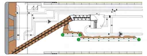Рис. 1-30. Режим проходки ТБМ с одним щитом (выгрузка шлака с центрального ленточного конвейера)