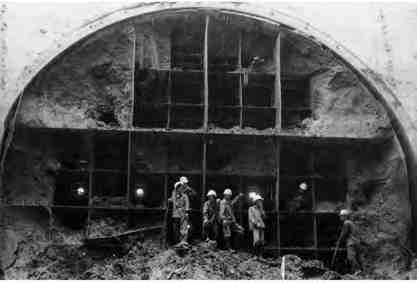 В мае 1966 года был построен первый в Китае подводный автодорожный туннель – главный туннель проекта строительства автодорожного туннеля Шанхай Дапу, пересекающий дорогу, с использованием 22-метрового щита с решетчатой экструзией ø 10 м, разработанного Шанхайским институтом проектирования туннелей и изготовленного Цзяннаньским судостроительным заводом (рис. 1-35), дополненного стабилизированной под давлением воздуха поверхностью выемки. Проходка туннеля была успешно выполнена под рекой Хуанпу на глубине 16 м (рис. 1-36), общая длина проходки составила 1322 м.