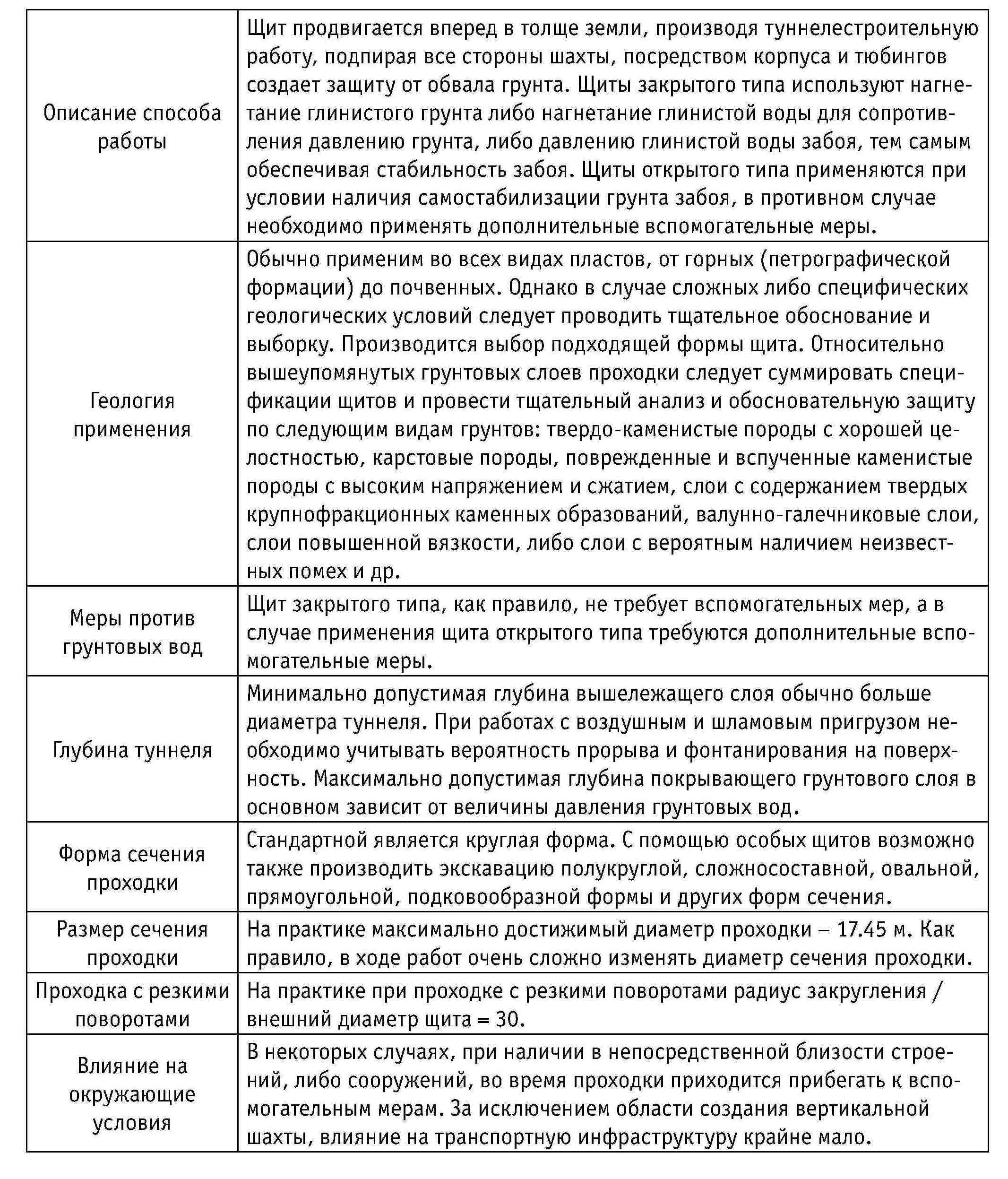 Таблица 2-1. Применимость метода щитовой проходки для геологических условий и условий окружающей среды