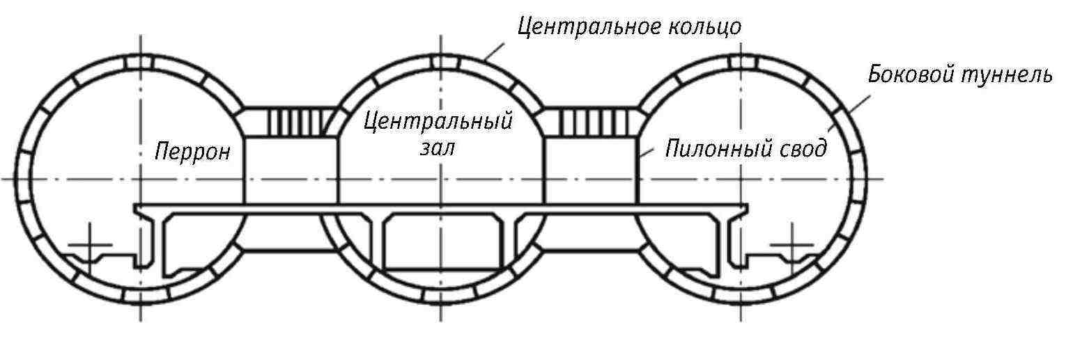 Рис. 2-5. Трехсводчатая станция метро щитопроходным методом
