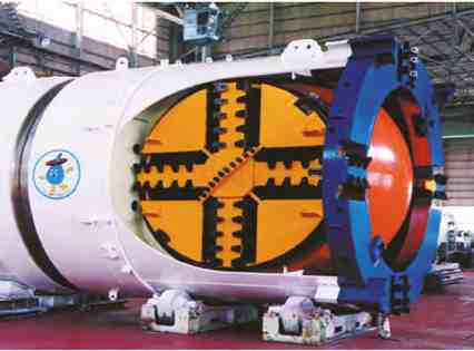 1. Специальное шарнирное сочленение изменяет направление механизма, что облегчает контроль над положением и направлением проходческого щита. Приводной механизм и механизм разработки туннеля являются автономными, что позволяет при разном качестве грунта раздельно управлять процессом забоя. Для проведения работ может быть выбран проходческий щит с гидропригрузом или грунтопригрузом.