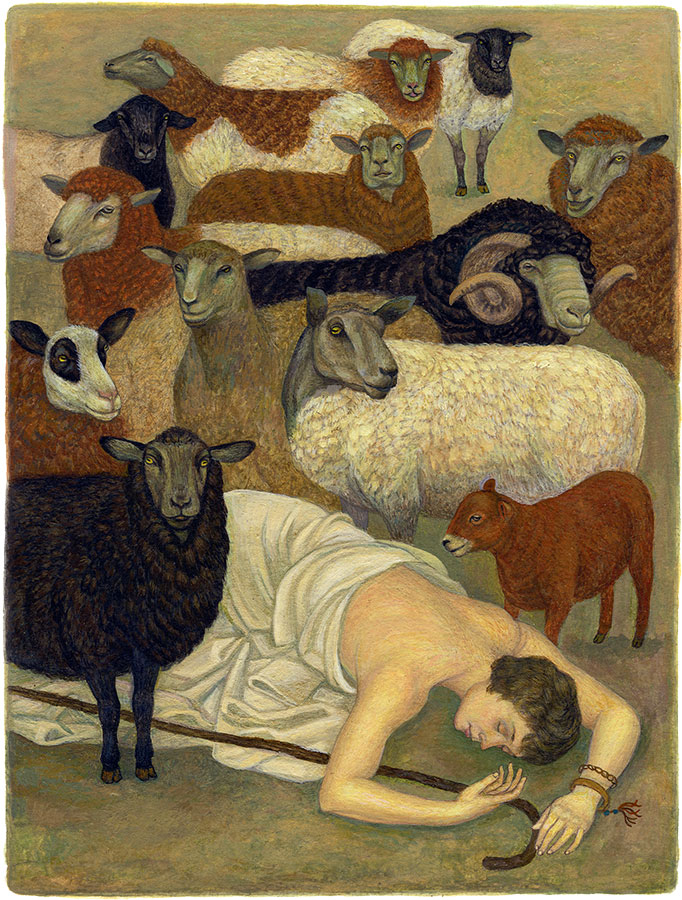 И Кабил повёл отца к пастбищу. Вскоре послышалось блеяние овец. Адам увидел стадо.