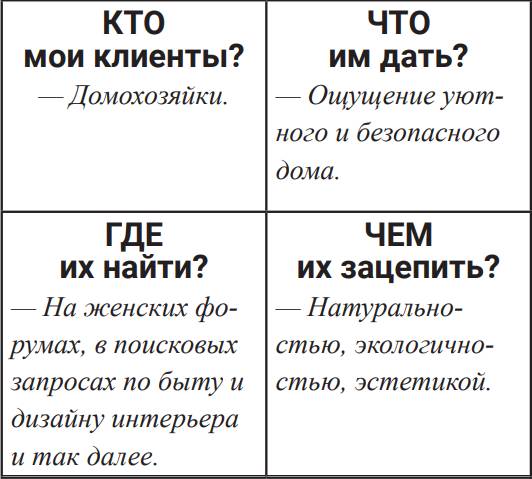 Кому мы продаем? Что мы продаем – то есть какой результат покупают наши клиенты? Где их найти? Чем мы можем их зацепить?