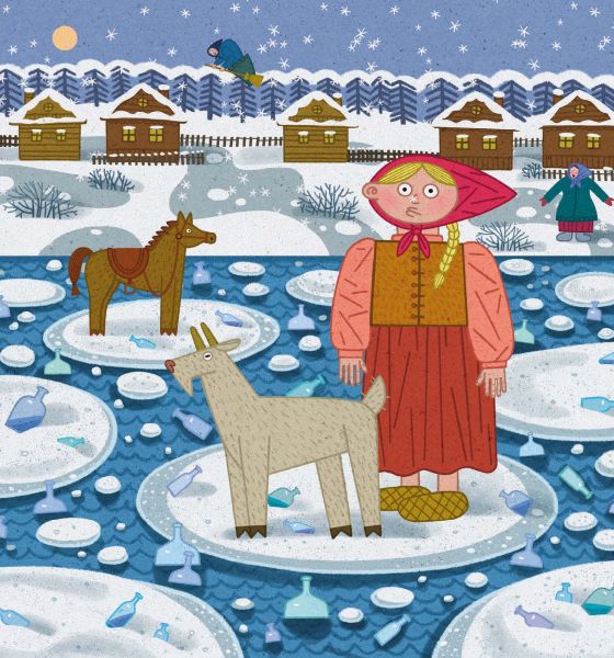 А через полгода, когда лед вскрылся, Аленушка ожила, косточки собрала, только берцовую не стала брать – она тяжелой оказалась, вот и оставила ее. Видит Иванушка сидит, а рядом с ним – козел!