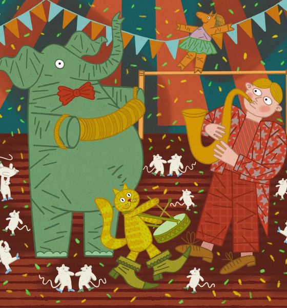 Взял саксофон и начал играть. Коту так понравилось, что он сам за барабаны сел. И начали они вдвоем джаз лабать. Тут Слон подошел, стал на гармошке играть. Конь прибежал и тоже… да просто стал на батуте прыгать. У них коллектив образовался и название само придумалось: «Джаз и воздушный гимнаст». А через день они уже в турне мировое поехали: 15 городов, Марсель – Токио, туда-сюда и мотались.