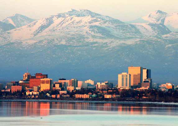 АНКОРИДЖ – НЕОФИЦИАЛЬНАЯ СТОЛИЦА АЛЯСКИС утра отправились в турне по магазинам: закупать провиант, снегоходы и недостающее снаряжение. Анкоридж представлял собой одно- и двухэтажный блин, широко размазанный по пойме (долине) реки Матануска, с несколькими торчащими «небоскрёбами» из стекла и бетона посерёдке. Город с трёх сторон подпирают пилообразные отроги гор, а с четвёртой (с запада) ограничивает залив Кука. Численность населения – 300 тысяч человек, но пешеходов на улицах почти нет – все на колёсах. Как правило, на грузопассажирских внедорожниках «форд», «шевроле», «тойота» немыслимых размеров и с полуметровым дорожным просветом. На некоторых установлены подвесные ножи для очистки пути от снега. Получается вездеход в квадрате! Легковых машин средней величины мало, а малогабаритные – вообще в диковинку. Не любят их американцы.
