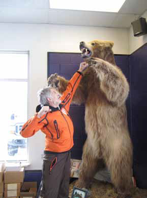 Застройка улиц смешанная: стиль кантри соседствует с городской архитектурой. Старых зданий мало – в 1964 году город был до основания разрушен Великим Аляскинским землетрясением с магнитудой в 9,2 балла! Деревьев много, правда совсем молодых, – похоже, что озеленением занялись недавно. На улицах и в скверах – вырезанные из стволов деревьев фигуры индейцев, птиц, зверей. Глухие стены домов отданы под красочные картины профессиональных художников. Практически во всех холлах гостиниц, торговых центрах гостей встречают необычные швейцары – чучела гризли. Один из них (с острова Кадьяк) был высотой не менее трёх метров – на такого с рогатиной не пойдёшь! Виктор Семёнов утверждал, что на Аляске медведи весом в полтонны не редкость. (Наши камчатские не меньше.)