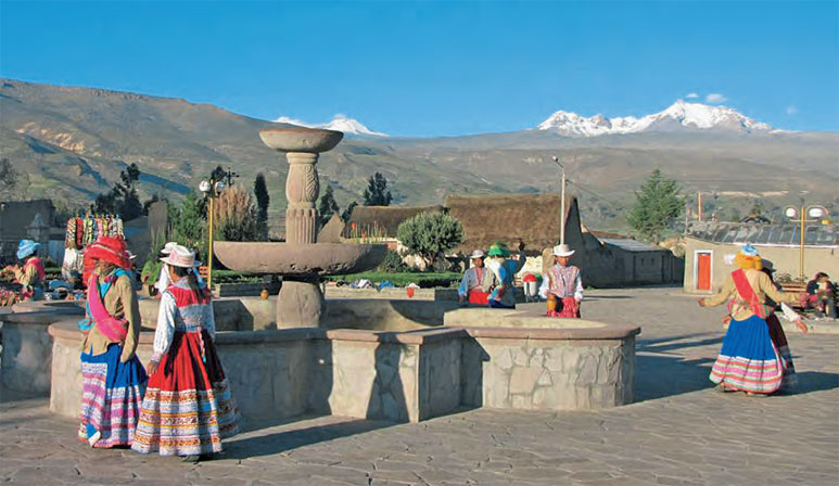 Несмотря на то, что городок расположен на высоте 3650 метров, центр утопает в цветах и украшен фонтаном. Правда, работает он только по праздникам.
