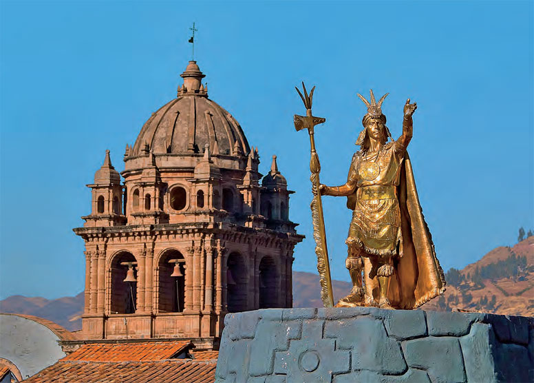 Поселились мы в небольшом отеле в узеньком проулке (настолько узком, что и маленькому грузовику не проехать), мощёном, как и все улицы в старой части Куско, твёрдым вулканическим камнем, прямо у стен монастыря Санта Доминго. Прежде на его месте красовался храм Кориканча, воздвигнутый специально для главного божества инков – Инти. Стены храма (их называли Золотыми стенами) в те времена были облицованы семьюстами пластинами золота, каждая весом два килограмма. А крыша покрыта позолоченными листами. Благодаря этому храм был виден отовсюду.