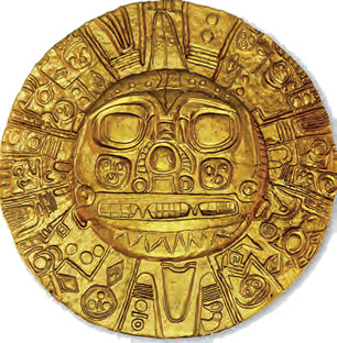 В главном зале Кориканчи находился огромный диск из чистого золота[4] – символ Солнца, укреплённый на алтарной стене таким образом, что при восходе диск разгорался нестерпимым огнём. А на противоположной стене висел диск, отражающий лучи заходящего светила. Видя утром и вечером ослепительный свет, исходящий из храма, трудно было усомниться в могуществе богов.