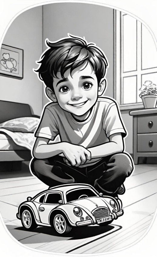 It was Derek, Rob’s long-forgotten toy car that magically came to life. In a gentle voice, Derek talked to Rob, reminding him of the world behind the screen – the fresh air, the laughter of his friends and the warmth of the sun.