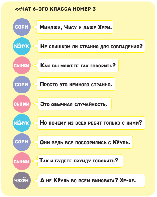 Кёуль, держа телефон в руках, сомневалась, ответить ей или нет. Может, ее снова будут уговаривать прийти в школу? Тогда совсем не хотелось брать трубку. Староста класса Сынхи среди одноклассников больше всех заботилась о ней. Поэтому девочка решила, что даже если она услышит то, что ей не понравится, правильней будет ответить, что она и сделала.