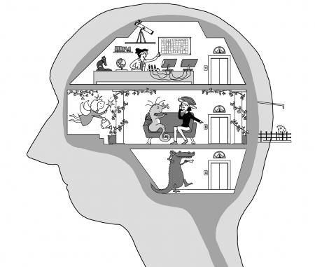 Чтобы визуализировать процессы в этих трех областях мозга, я решила представить его особым образом. Всех матерей в этом мире объединяет их дом, их гнездышко. Именно поэтому наш мозг я метафорически изобразила в виде дома. Три обозначенные области нашего мозга – это три этажа нашего дома: мозговой ствол представляет подвал, средний мозг – первый этаж, а большой мозг – мансарду. Это по-настоящему ваш дом, потому что здесь живет ваше «я». Как и в любом другом доме, все начинается с наведения порядка на одном из этажей. Мамы часто копят ненужные мысли и темы, и, чтобы снизить уровень стресса, от этих мыслей и тем нужно избавиться. О доме выигрышного мышления, как и о любом другом доме, необходимо заботиться, убирать его и ремонтировать, чтобы чувствовать себя в нем счастливым. Что ж, теперь предлагаю вам устроить небольшую экскурсию по этому дому!
